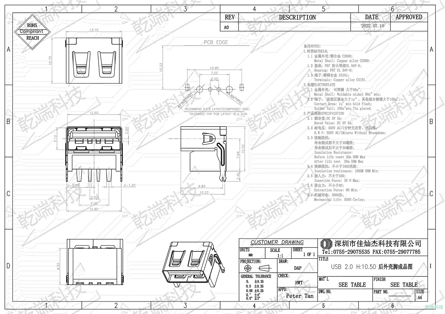 端子:C5191&H62;电镀规格:常规1U,其他规格可定制。
